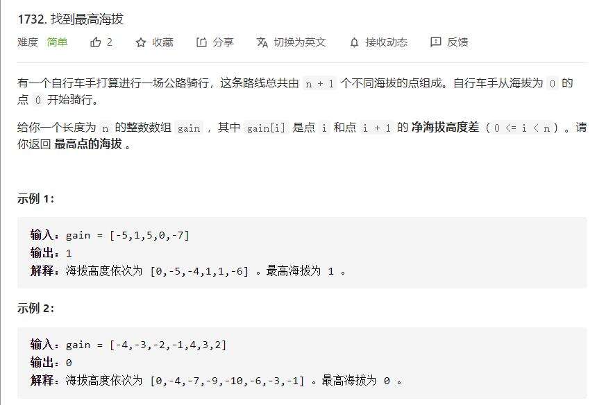 这题题目意思也比较明确,初始海拔为0,然后得到的新数组来自于与gain数组的和。