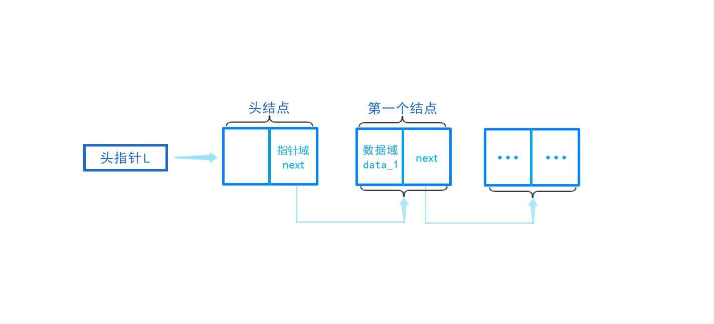 头结点指针域内的指针指向第一个结点的地址,第一个结点指针域的指针域指向第二个结点的地址,直到最后指向尾结点的空(NULL)。