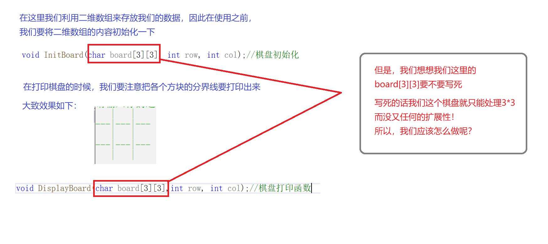 void DisplayBoard(char board[3][3], int row, int col)//棋盘打印函数{for (int i = 0; i < 3; i++)