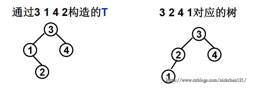 - 分别建两颗搜索树的判别方法:根据两个序列分别建树,再判别树是否一样