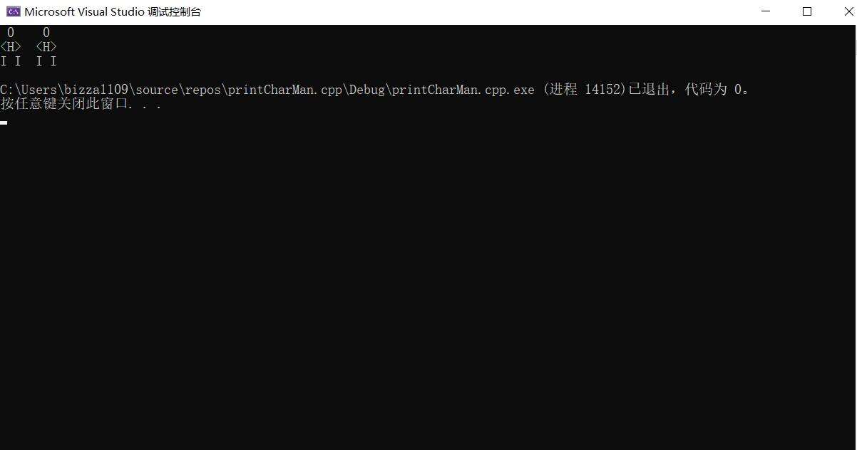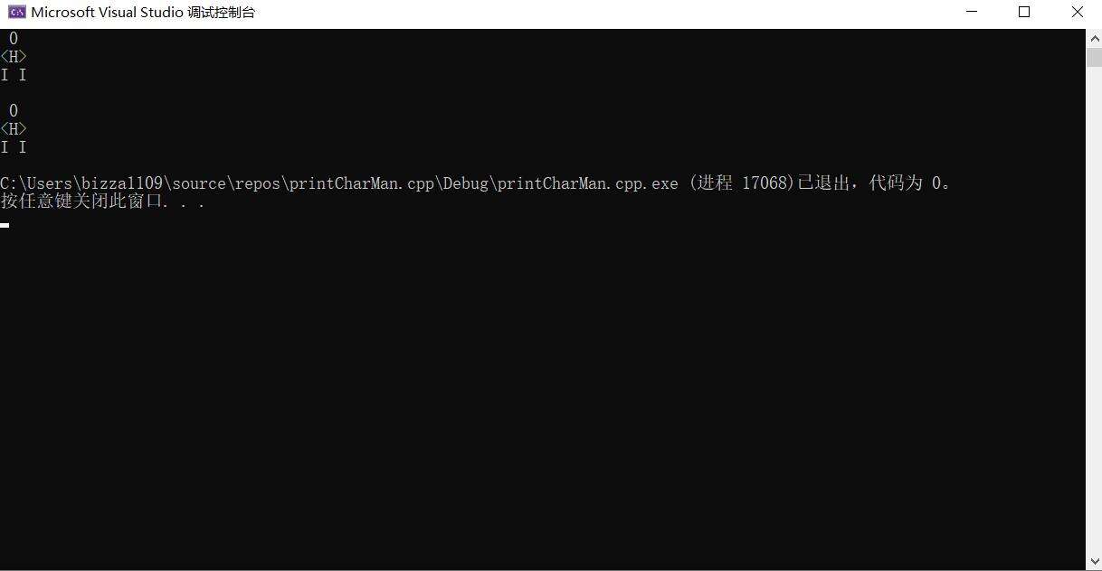 #include<stdio.h> int main() { printf(" 0 \n"); printf("<H>\n"); printf("I I\n"); printf(" \n"); printf(" 0 \n"); printf("<H>\n"); printf("I I\n"); return 0;}
