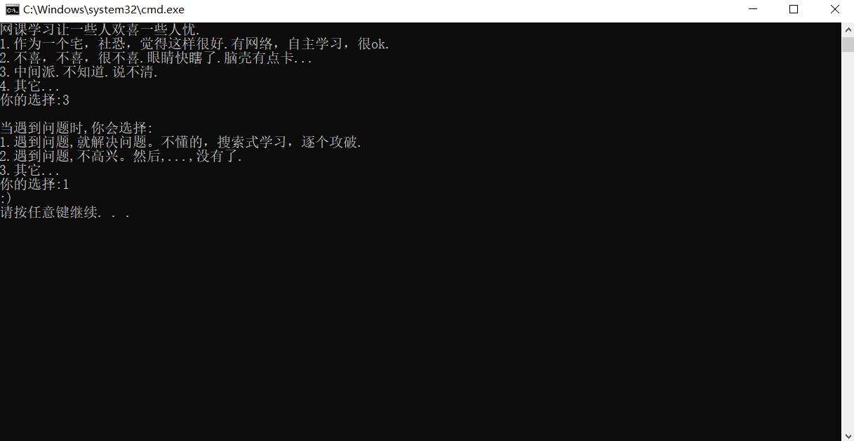 printf("2.遇到问题,不高兴。然后,...,没有了.\n");