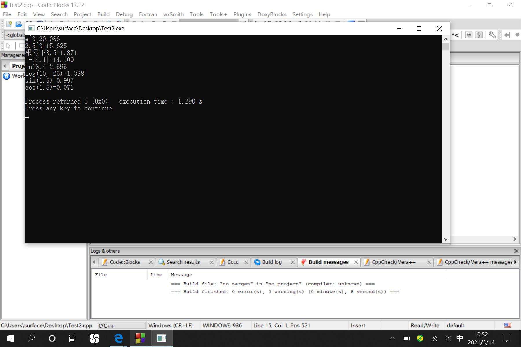printf("cos(1.5)=%.3lf\n", cos(1.5));//cos(1.5), 1,5为弧度