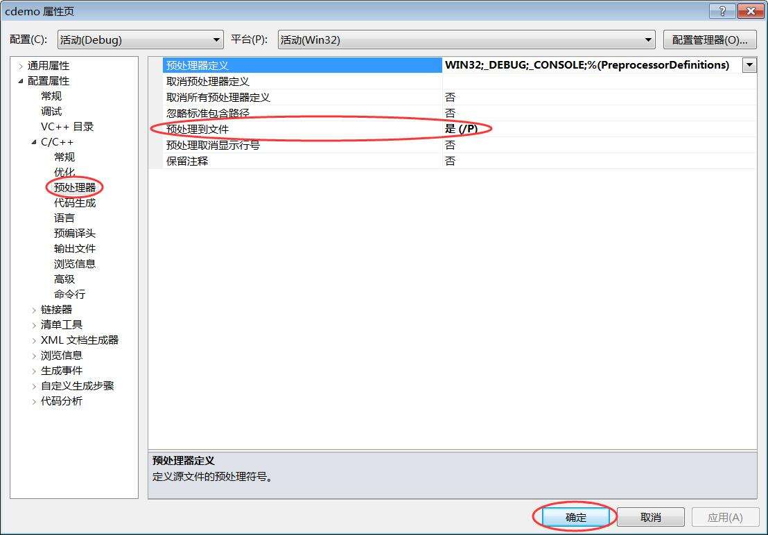 在 Visual Studio 中,在当前工程的属性面板中将“预处理到文件”设置为“是”,如下图所示:
