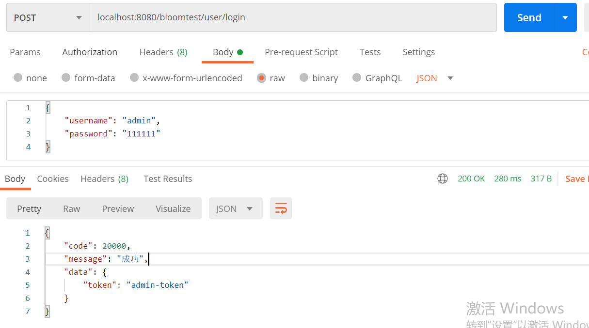 }重试一下,登录请求成功了,但是不能跳转,因为还有个接口没实现,那就是/useInfo。