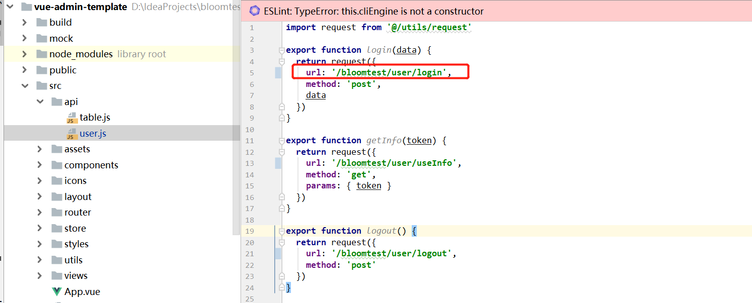 这里就是前端请求的接口路径,替换成我们实现的 /login,