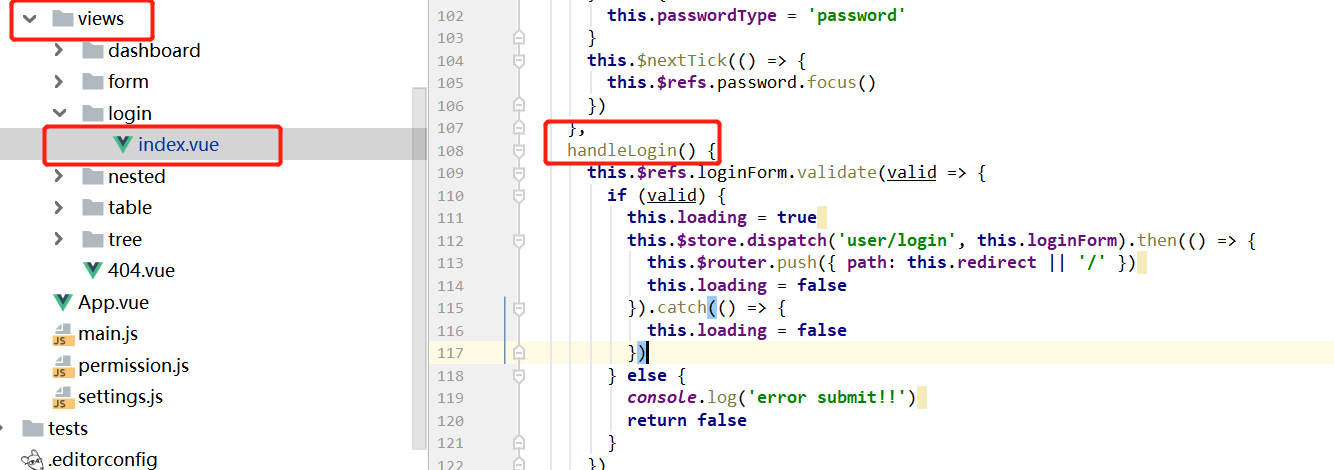 从Login按钮的绑定的事件知道handleLogin就是用来处理登录的方法,不过这里暂时不需要进行改动。