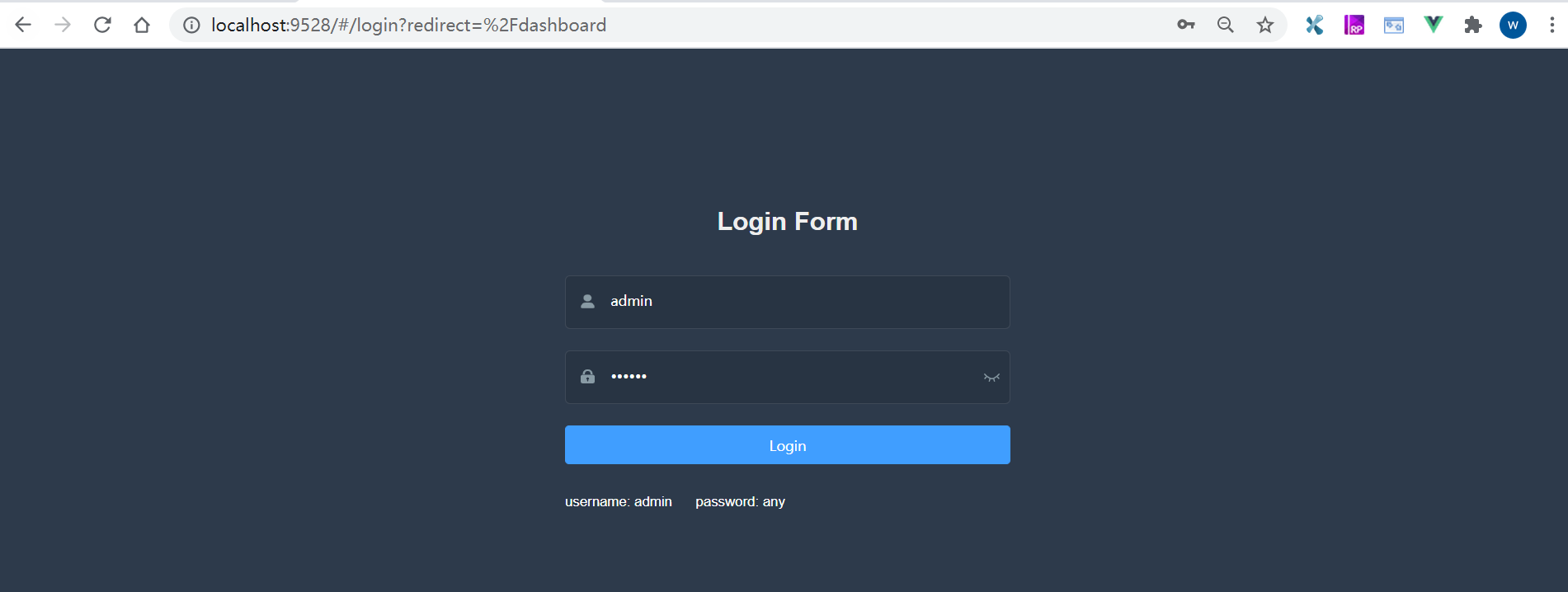 但是我们还没实现后端,怎么就登录了?这是因为前端框架里目前的请求都是走的它内置的 mock,所以等会要去开发后端接口替换掉这些 mock。