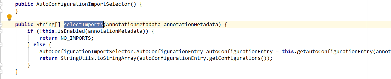 这里有个selectImports方法,这个方法决定了要具体导入哪些,返回的是一个数组。