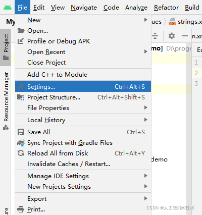 选择“Project”->“settings.gradle”。在文件中添加include ‘:openCVsdk'