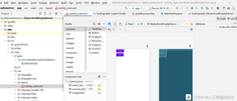 Android利用OpenCV制作人脸检测APP 目录 前言 第一步:下载并安装Android studio 第二步:下载SDK tools 第三步:新建一个Android APP项目 第四步:下载Opencv 第五步:导入OpenCV 第六步:添加代码 第七步:连接手机运行程序 前言 本篇文章手把手教大家使用OpenCV来实现