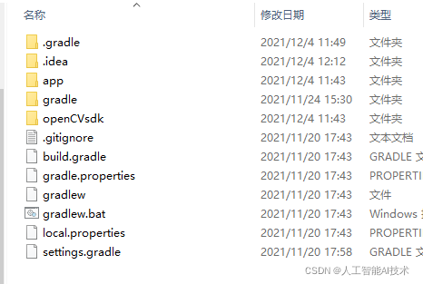 将opencv-4.5.4-android-sdk\OpenCV-android-sdk下面的sdk复制到你在第三步创建的Android项目下面。就是第三步图中的D:\programming\MyApplication下面。然后将sdk文件夹改名为openCVsdk。