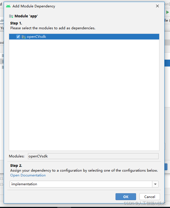 选中“openCVsdk”,点击“OK”,以及母窗口的“OK”
