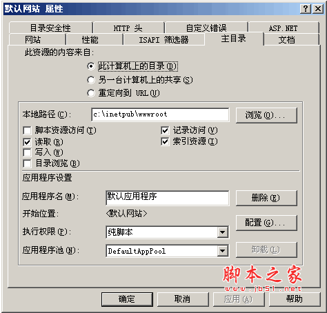 注:根据自己需要设置,一般加上“运行脚本(如 ASP)”即可,就是在执行权限里选纯脚本 。