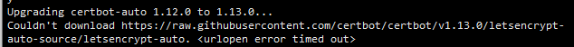 Couldn't download https://raw.githubusercontent.com/certbot/certbot/v1.13.0/letsencrypt-auto-source/letsencrypt-auto. <urlopen error timed out>