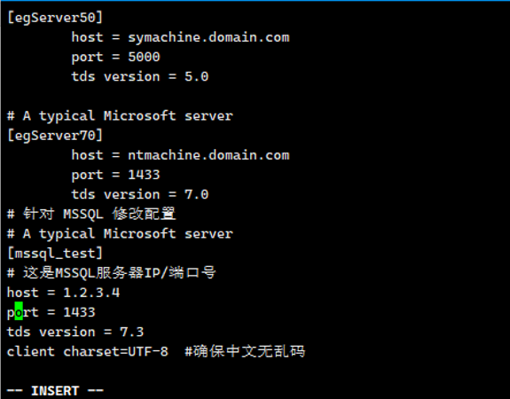 5、配置freetds.conf文件