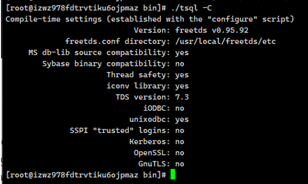 ./tsql -C出现如下所示则表示安装成功: