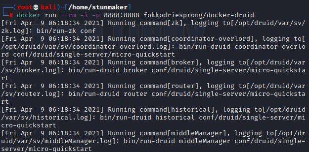 docker run --rm -i -p 8888:8888 fokkodriesprong/docker-druid