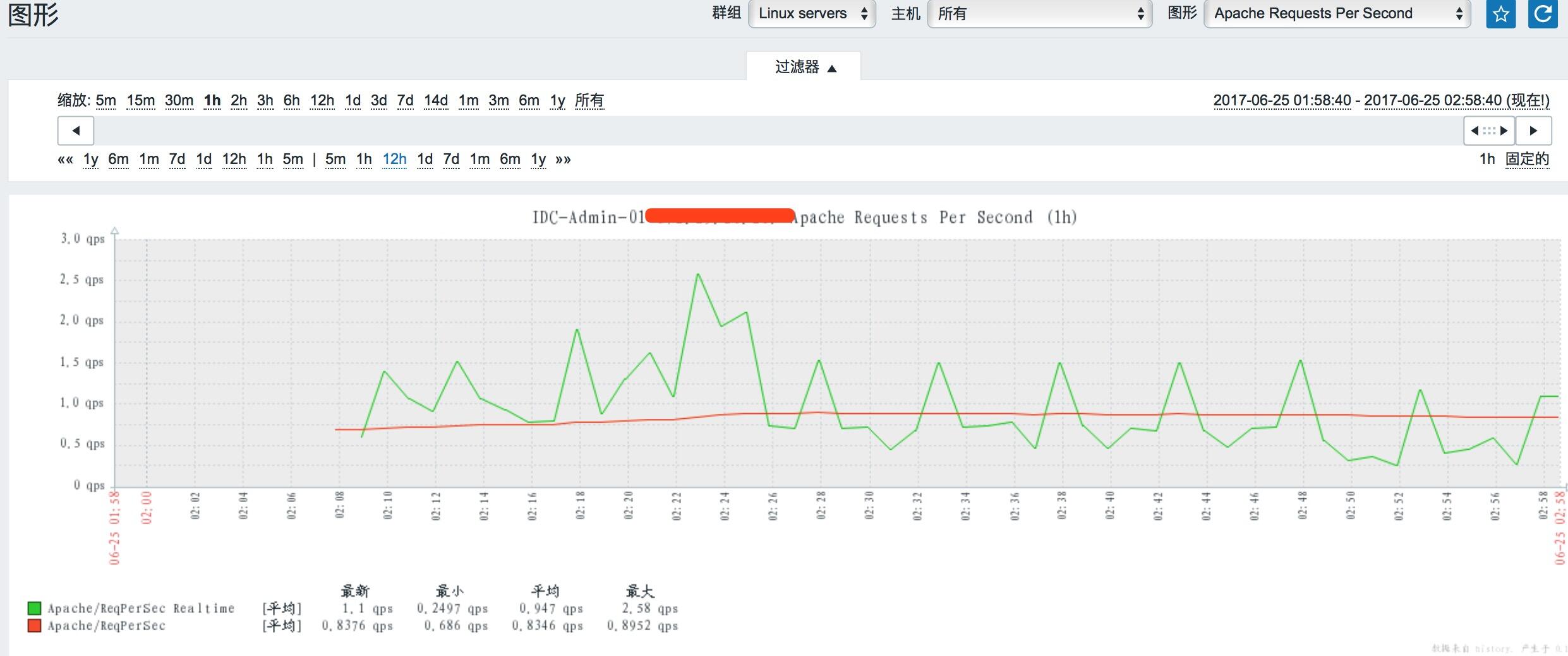[root@IDC-Admin-01 ~]# ll /data/zabbix/monitor_scripts/zapache.sh -rwxr-xr-x 1 zabbix zabbix 6.0K 6月 25 01:47 /data/zabbix/monitor_scripts/zapache.sh [root@IDC-Admin-01 ~]# cat /data/zabbix/etc/zabbix_agentd.conf|grep Include ### Option: Include Include=/data/zabbix/etc/zabbix_agentd.conf.d/ [root@IDC-Admin-01 ~]# cat /data/zabbix/etc/zabbix_agentd.conf.d/userparameter_zapache.conf # # This is a sample zabbix_agentd config file. # Put it to /etc/zabbix_agentd.conf.d or otherwise integrate into agent config. # Edit to your needs. # UserParameter=zapache[*],/data/zabbix/monitor_scripts/zapache.sh \$1 [root@IDC-Admin-01 ~]# /etc/init.d/zabbix_agentd restart