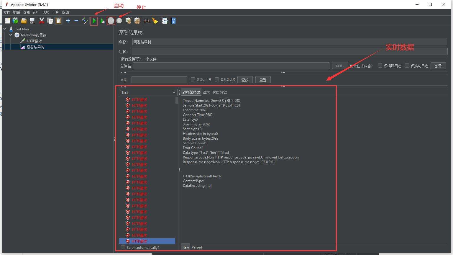 启动,察看结果树