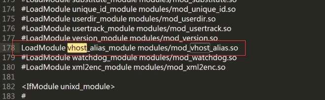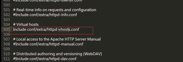 a、在conf目录下打开httpd.conf文件,搜索vhost打开虚拟主机的相关模块,如图: