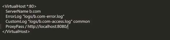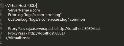 a、找到conf/extra/httpd-vhosts.conf中找到配置好的虚拟主机进行请求头信息配置,如下图: