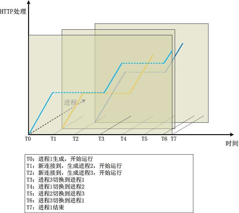 一般情况下都是按照上图处理的。每来到一个连接,便会新建一个进程或者线程单独服务那个连接,连接结束后,进程或者线程随即销毁。