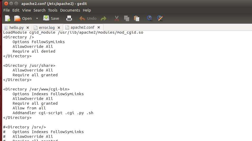 <Directory /var/www/>更改为<Directory /var/www/cgi-bin>