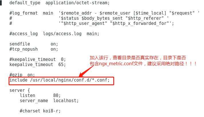 cp /home/work/falcon-ngx_metric/ngx_metric.conf /usr/local/nginx/conf.d/(注意后期的配置文件中一定要把该文件包含进去)