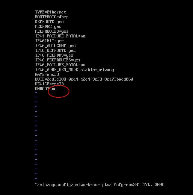 从配置清单中可以发现 CentOS 7 默认是不启动网卡的(ONBOOT=no)。