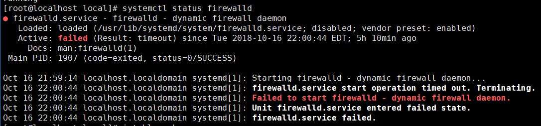 用另一种命令:systemctl status firewalld查看防火墙状态,出现了Active: failed (Result: timeout)