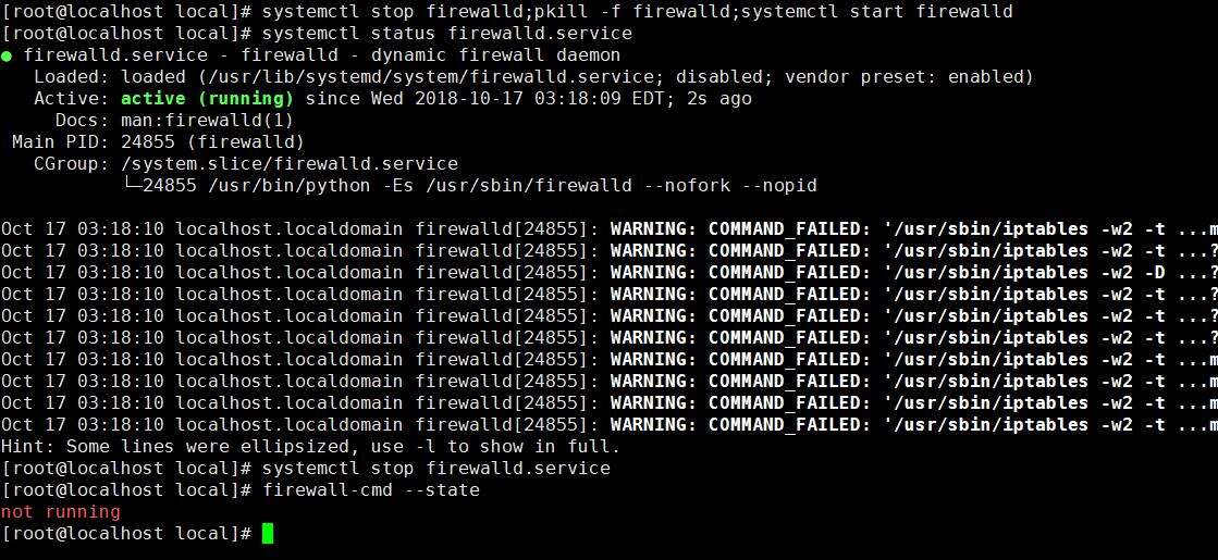 我这里出现了一个小问题,以前没出现过的:执行以上命令后,再次查看防火墙状态居然还是running