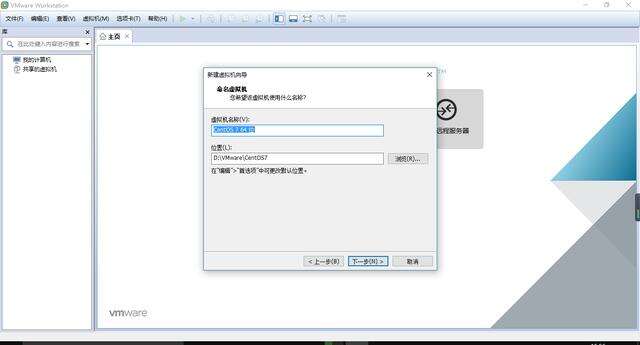 e)输入“虚拟机名称”;点击“浏览”按钮,选择虚拟机文件保存的位置;点击“下一步