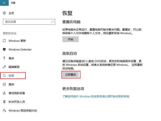 点击疑难解答->高级选项->UEFI固件设置->重启