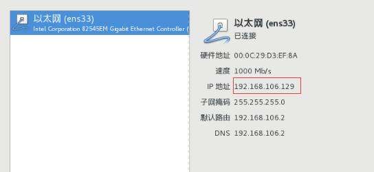 根据安装CentOS配置的以太网,获取IP地址:192.168.106.129