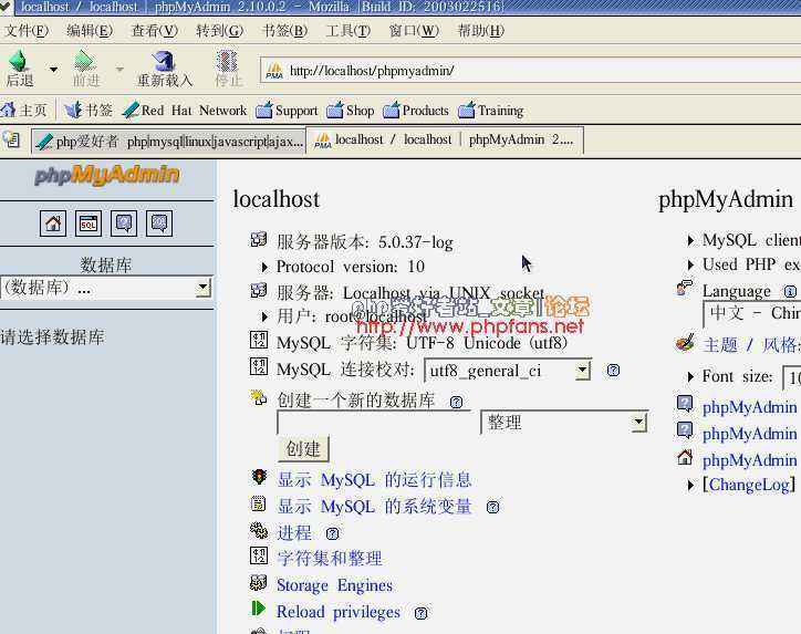 phpMyAdmin 的具体功能,请慢慢熟悉,这里不再赘述.