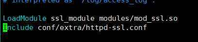 #LoadModule ssl_module modules/mod_ssl.so #删除行首的配置语句注释符号“#”加载mod_ssl.so模块启用SSL服务,Apache默认是不启用该模块的。 #Include conf/extra/httpd-ssl.conf #删除行首的配置语句注释符号“#”。