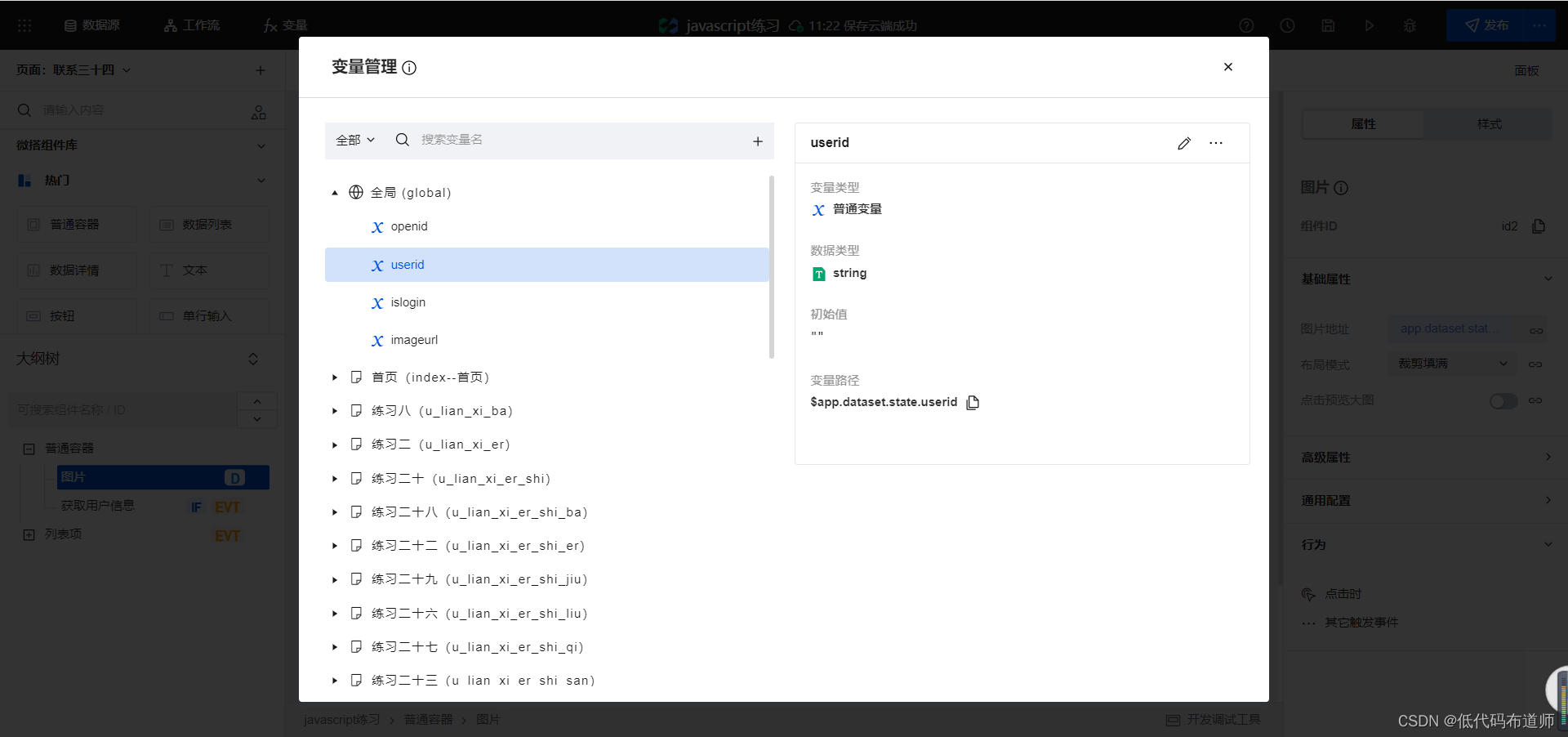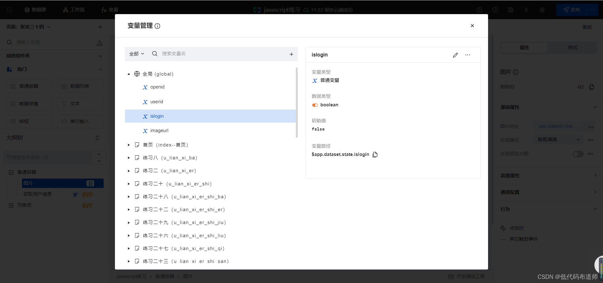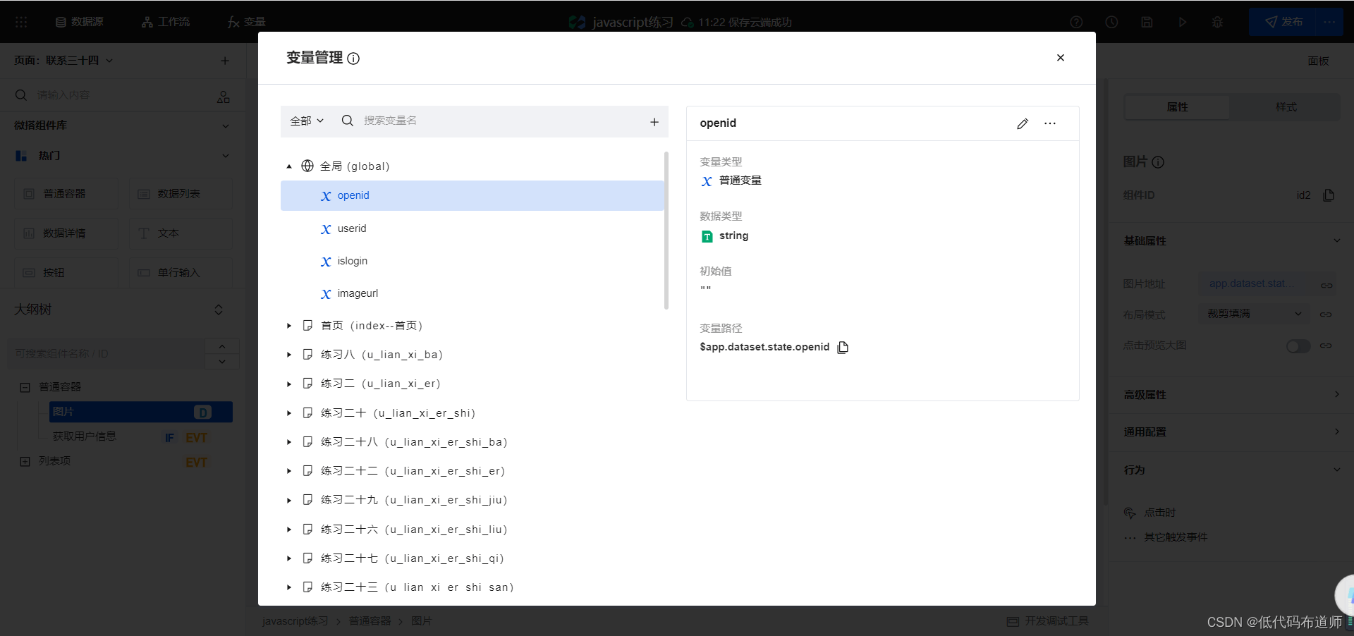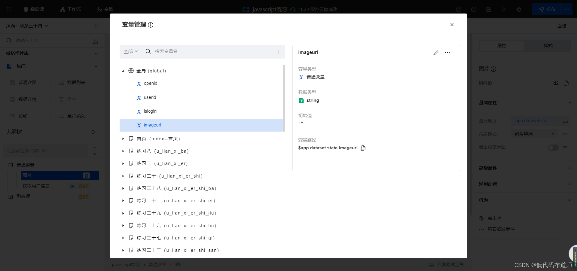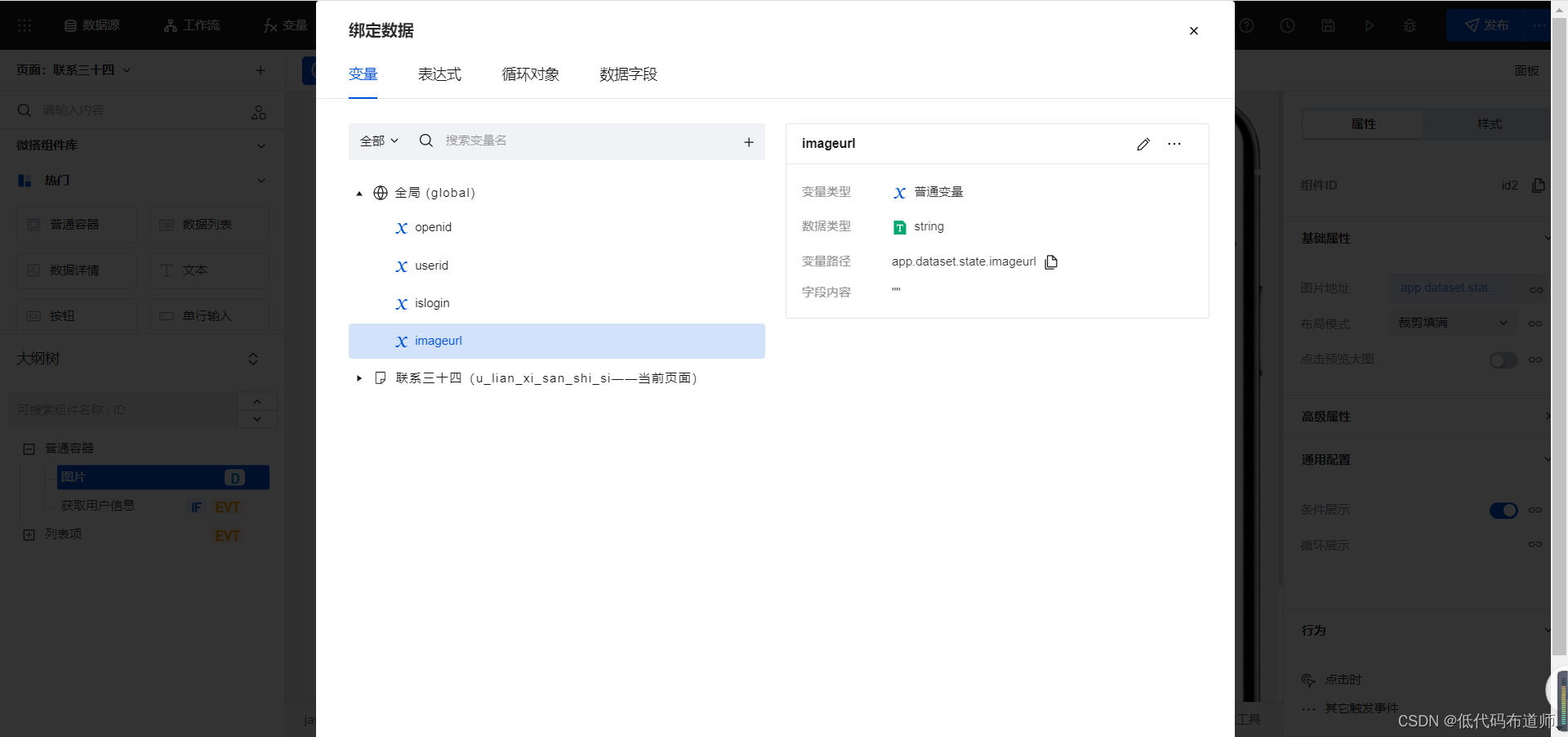 在低码编辑器中如果需要使用全局变量的,是需要通过变量的路径来访问,我们这里的路径是