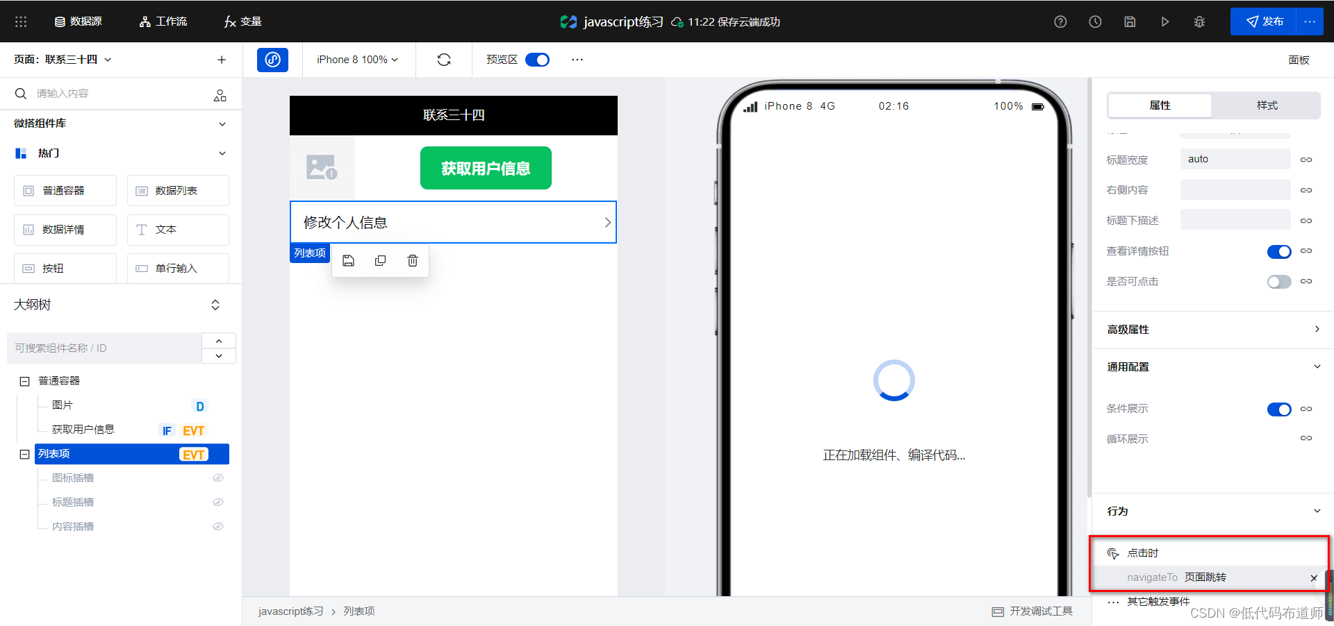 用户登录的问题解决了之后,就是要考虑用户的注册问题。在微搭低代码获取用户信息提供了对应的组件,我们可以往页面中添加相应的组件